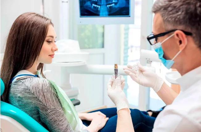 Консультация хирурга‑имплантологаперед имплантацией обязательна: врач оценивает состояние полости рта и здоровья пациента, разрабатывает план лечения для безопасности и успеха процедуры.